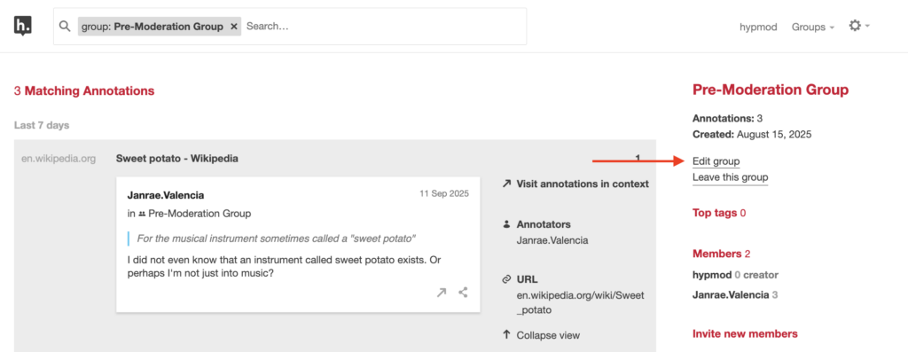 - Hypothesis users with the “Moderator” role in a group that uses Pre-moderation